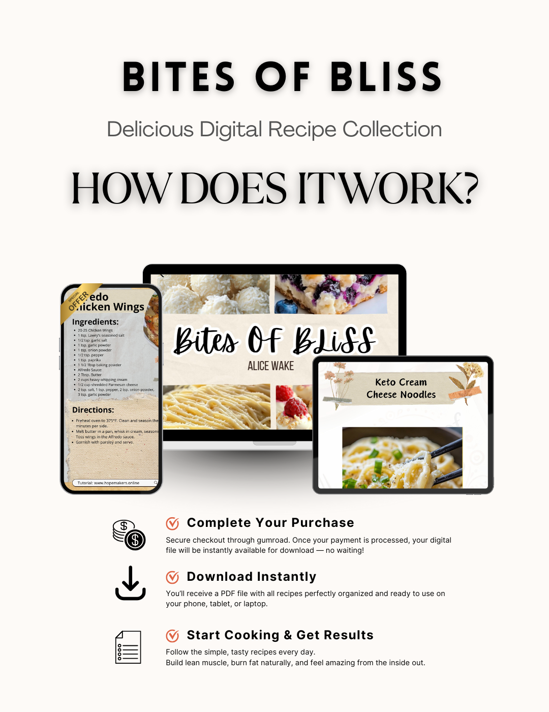 Bites of Bliss: Digital Recipe Book 🍽️✨ Enjoy easy, delicious recipes with Bites of Bliss. This digital collection features beginner-friendly instructions, stunning visuals, and dishes for every occasion. Instantly download and transform your cooking today! 🧑🍳❤️